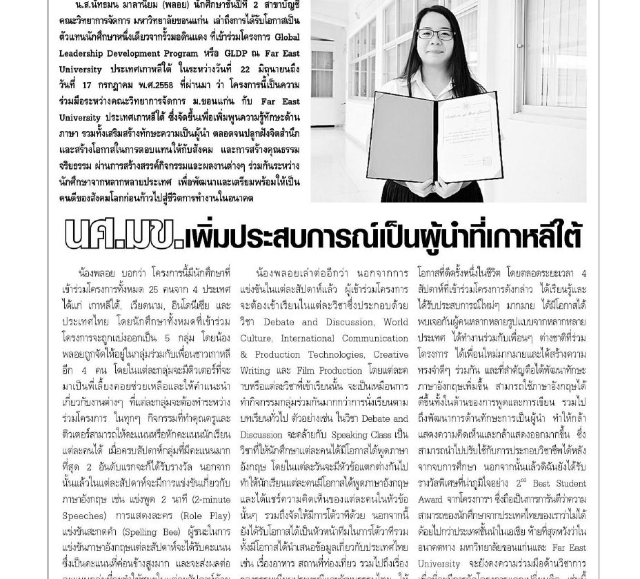 บ้านเมือง-นศ.มข.เพิ่มประสปการณ์เป็นผู้นำที่เกาหลีใต้