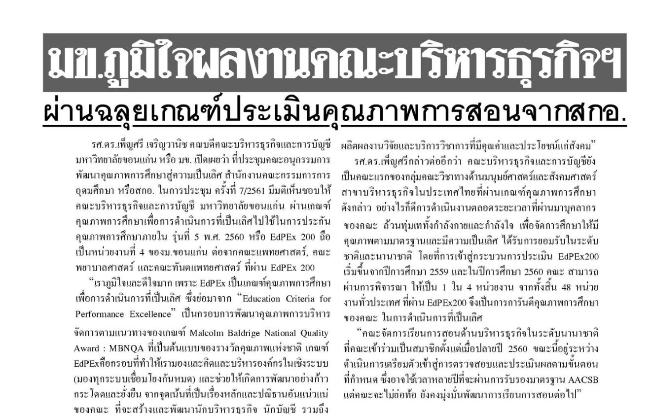 ข่าวสด-มข.ภูมิใจผลงานคณะบริหารธุรกิจฯ