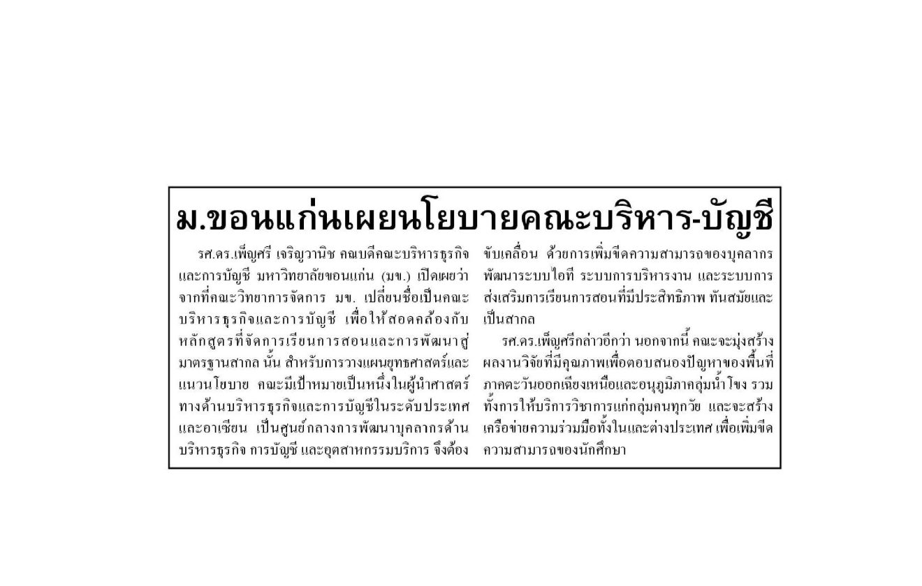 ข่าวสด-ม.ขอนแก่น เผยนโยบาย คณะบริหาร-บัญชี