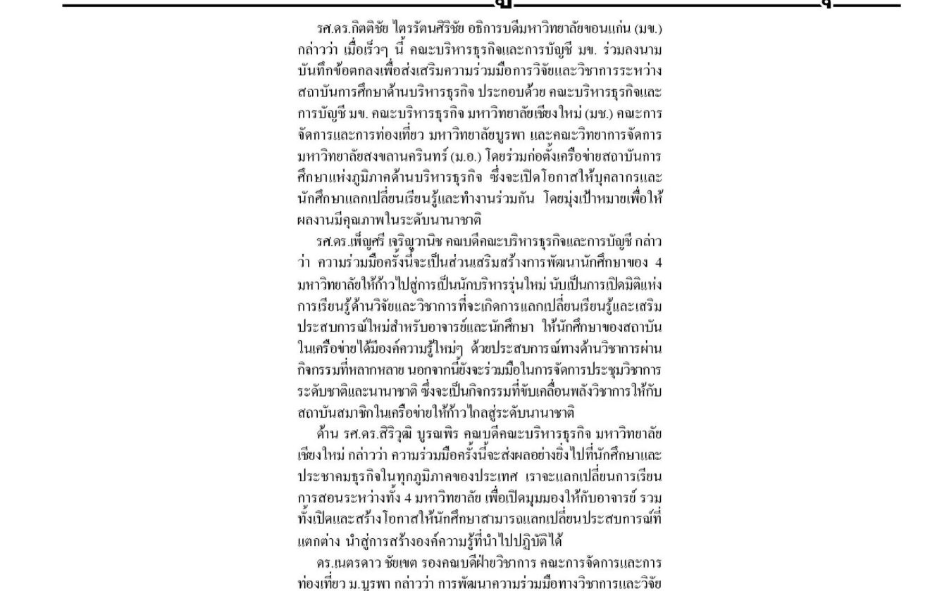 ข่าวสด-ผนึก4สถาบัน’มข.-มช.-มอ.-ม.บูรพา’ ตั้งเครือข่ายมหาวิทยาลัยภูมิภาคด้านบริหารธุรกิจ