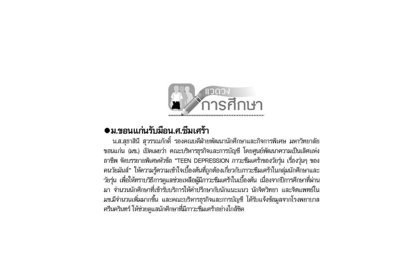 มติชน-ม.ขอนแก่นรับมือ นศ.ซึมเศร้า