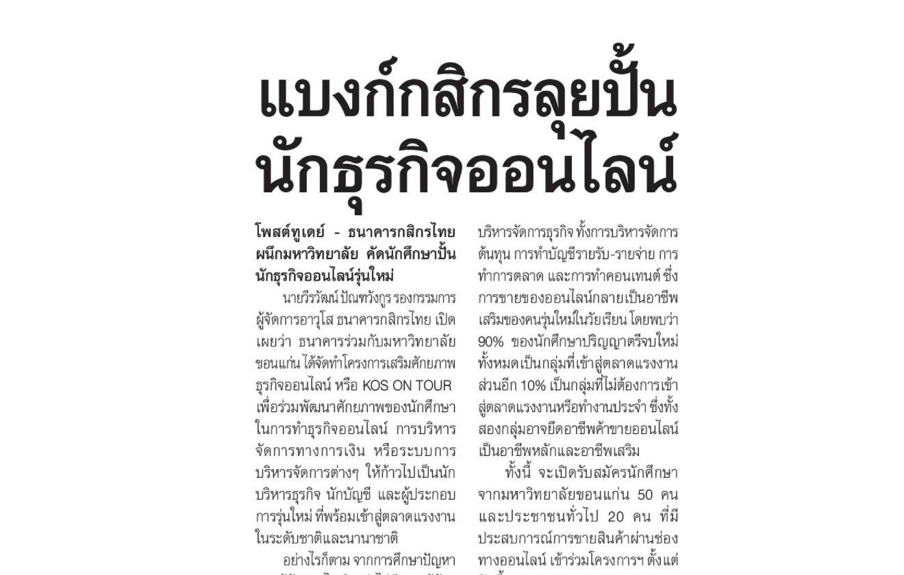 โพสต์ทูเดย์-แบงค์กสิกรลุยปั้นนักธุรกิจออนไลน์