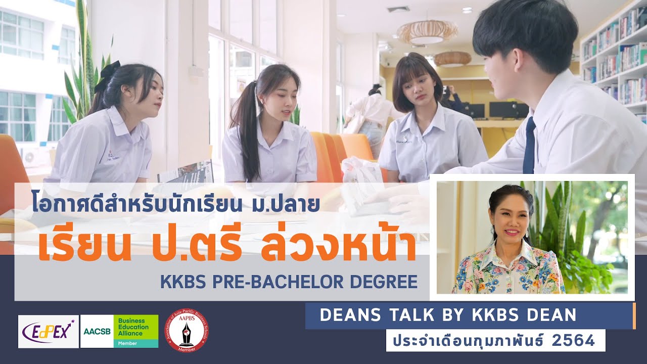 ข่าวดีสำหรับน้องๆระดับมัธยมศึกษาชั้นปีที่ 4 – 6 ในภาคอีสาน คณะบริหารธุรกิจและการบัญชี มหาวิทยาลัยขอนแก่น เปิดหลักสูตรเรียน ป.ตรี ล่วงหน้า แบบสะสมหน่วยกิต รับสมัครถึงวันที่ 7 มี.ค.นี้เท่านั้น พร้อมอัพเดตเรื่องราวข่าวสารสารต่างๆ ของ KHONKAEN BUSINESS SCHOOL กับ รศ.ดร.เพ็ญศรี เจริญวานิช คณบดีคณะบริหารธุรกิจและการบัญชี มหาวิทยาลัยขอนแก่น ในรายการ Dean’s Talk by KKBS’s Dean EP.21 ประจำเดือนกุมภาพันธ์ 2564