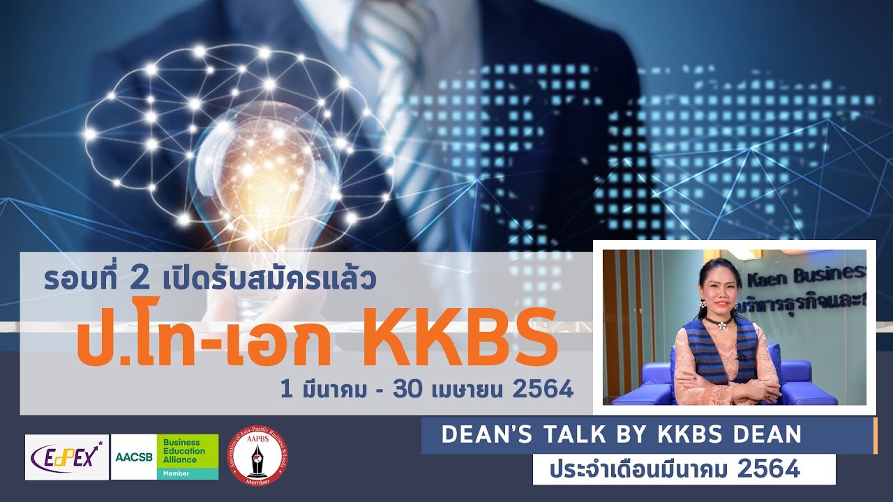 หลักสูตร ป.โท-ป.เอก เสริมสร้างความเป็นนักบริหารมืออาชีพแบบเฉพาะทาง จาก คณะบริหารธุรกิจและการบัญชี มหาวิทยาลัยขอนแก่น ปีการศึกษา 2564 เปิดรับสมัครรอบที่ 2 แล้ว รายละเอียดการรับเข้าจะเป็นอย่างไร ติดตามได้กับ รศ.ดร.เพ็ญศรี เจริญวานิช คณบดีคณะบริหารธุรกิจและการบัญชี มหาวิทยาลัยขอนแก่น ในรายการ Dean’s Talk by KKBS’s Dean EP.22 ประจำเดือนมีนาคม 2564