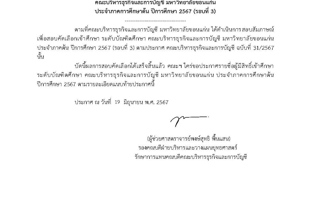 KKBS ประกาศรายชื่อผู้มีสิทธิ์เข้าศึกษาระดับบัณฑิตศึกษา ประจำภาคการศึกษาต้น ปีการศึกษา 2567 (รอบที่ 3)