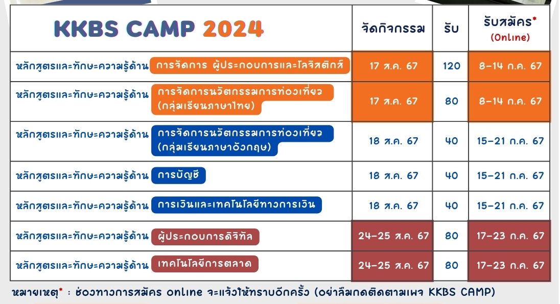 : ประกาศผลการคัดเลือกและรายละเอียดเพิ่มเติมที่ Facebook : KKBS CAMP